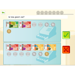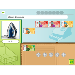 Einkaufen mit dem Franken ist eine umfangreiche Lern- und Trainings-App für Jugendliche und Erwachsene, die lebenspraktische Fertigkeiten zum Themenkreis „Geld, Waren, Einkaufen“ erwerben möchten.