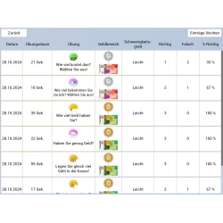 Alle abgeschlossenen Übungen werden protokolliert und so die Überprüfung des Lernfortschritts ermöglicht.