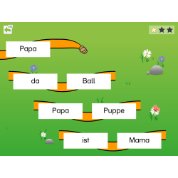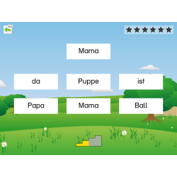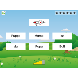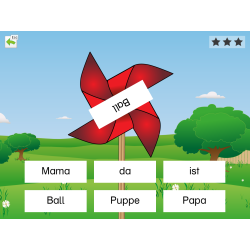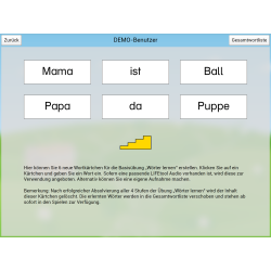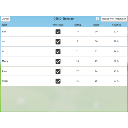 Die App beinhaltet die Basisübung „Wörter lernen“ zum Einführen neuer Wörter und 5 Übungen zum Festigen der erlernten Wörter.