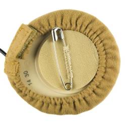 Flacher Taster, der mit Sicherheitsnadel und Klettband an der Kleidung etc. befestigt werden kann